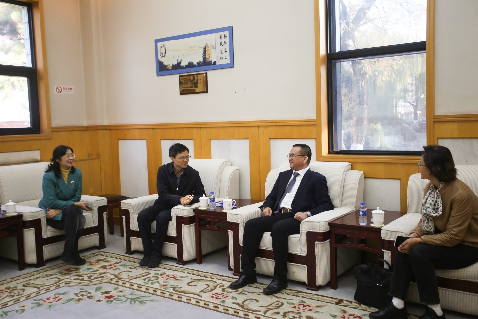 学术报告前,周炜主任与公司党委副书记、副经理陈军华教授、党委副书记李涛教授、钱大琳教授、进行了沟通交流,就院校人才培养、碳中和,碳达峰要求下的公路交通的新技术、智能化,自动化驾驶背景下运输行业的发展与转型等方面进行了深入探讨。