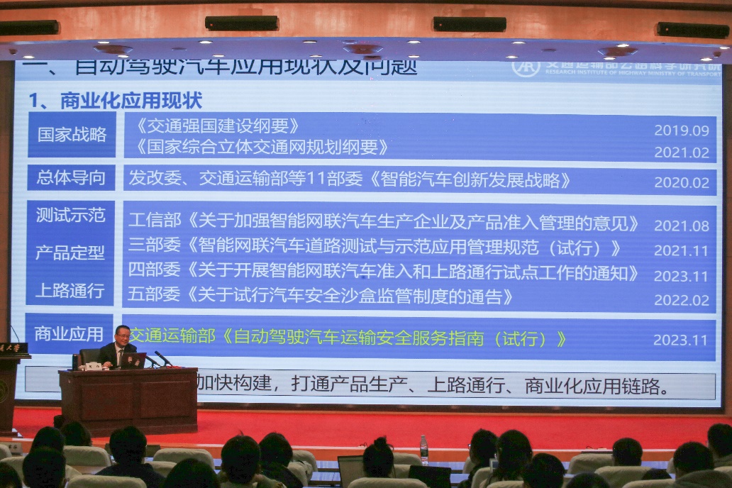 最后,周炜主任表达了对新时代中国青年勇担实现中华民族伟大复兴的历史使命的期望,以及对广大师生积极投身绿色智能道路运输科技创新的愿景。周炜主任的精彩讲座令在座师生听众对绿色智能道路运输的丰富内涵有了更深刻的理解,也更加激发了本研员工对自动驾驶运输服务高质量发展的研究热情,对师生们拓宽学术视野、启发创新思维具有重要的指导和助推作用。