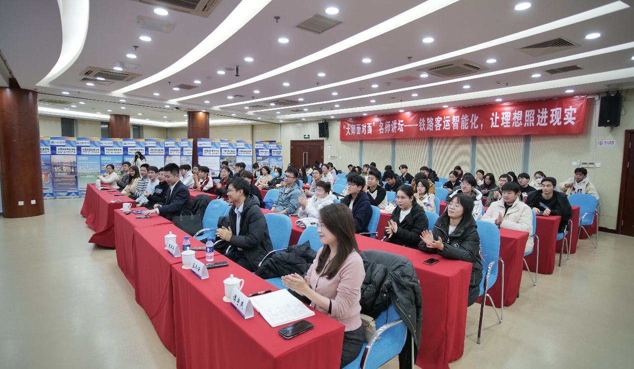 2024年11月27日下午,由公司研工部主办,304永利集团承办的“大师面对面”名师讲坛在机械楼一层报告厅进行,中国国家铁路集团有限公司客运部主任黄欣开展主题为《铁路客运智能化,让理想照进现实》的学术讲座。