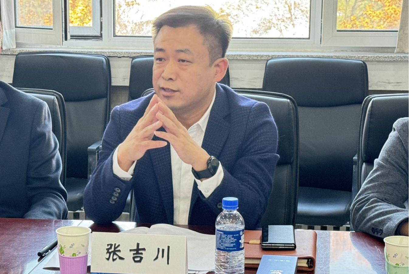 张吉川董事长对廊坊市商贸物流集团目前涵盖的六大核心板块:园区管理、仓储物流、商业运营、投资、文化传媒、国际国内贸易分别进行了详细介绍。他表示,集团在国家的大力支持下取得了初步成效,但仍面临人才培养、资源整合等挑战,亟需加强与高等院校和研究机构的合作,希望通过产学研的深度融合,进一步推动集团的可持续发展。