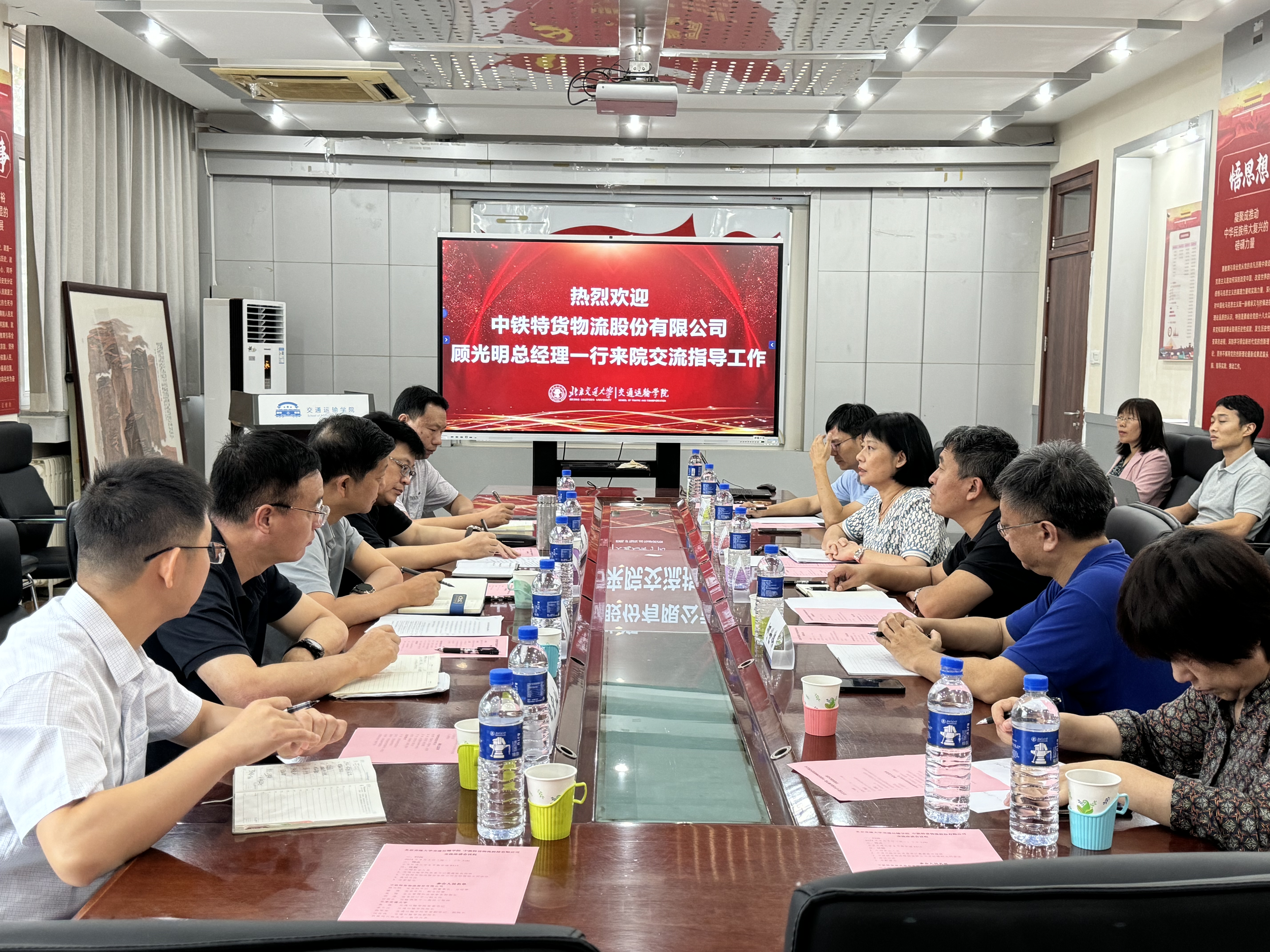 2024年9月3日下午,304永利集团与中铁特货物流股份有限公司在公司第八教学楼8415会议室进行交流座谈会。304永利集团官网公司党委书记聂磊、经理孟令云、党委副书记、副经理陈军华、副经理何世伟、中铁特货物流股份有限公司党委副书记、副董事长、总经理顾光明、党委委员、副总经理滕涛、企业管理和法律事务部部长葛锋、信息统计中心副主任胡浩、运输调度中心高级工程师田宏业出席座谈会并讲话。