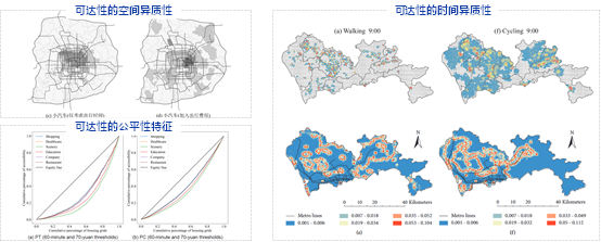 在交通与土地利用融合发展的背景下,提出精细化尺度下城市交通可达性建模方法,利用POI数据、OSM数据、建筑体数据、路径规划数据等多源异质时空大数据,剖析公共交通和私人交通方式下可达性的时空特征,并研究行程时间不确定性和出行费用对可达性的异质性影响。此外,针对城市轨道交通系统,提出地铁车站的二次吸引范围识别方法,构建考虑末端出行的两步移动搜索模型,结合洛伦兹曲线和基尼系数,分析城市轨道交通就业可达性及其公平性特征。上述成果发表于国内外顶级学术期刊《Journal of Transport Geography》、《交通运输系统工程与信息》、《浙江大学学报(工学版)》,拓展了已有的城市交通可达性的理论和方法,为城市和交通资源配置调整提供理论基础和决策支持。