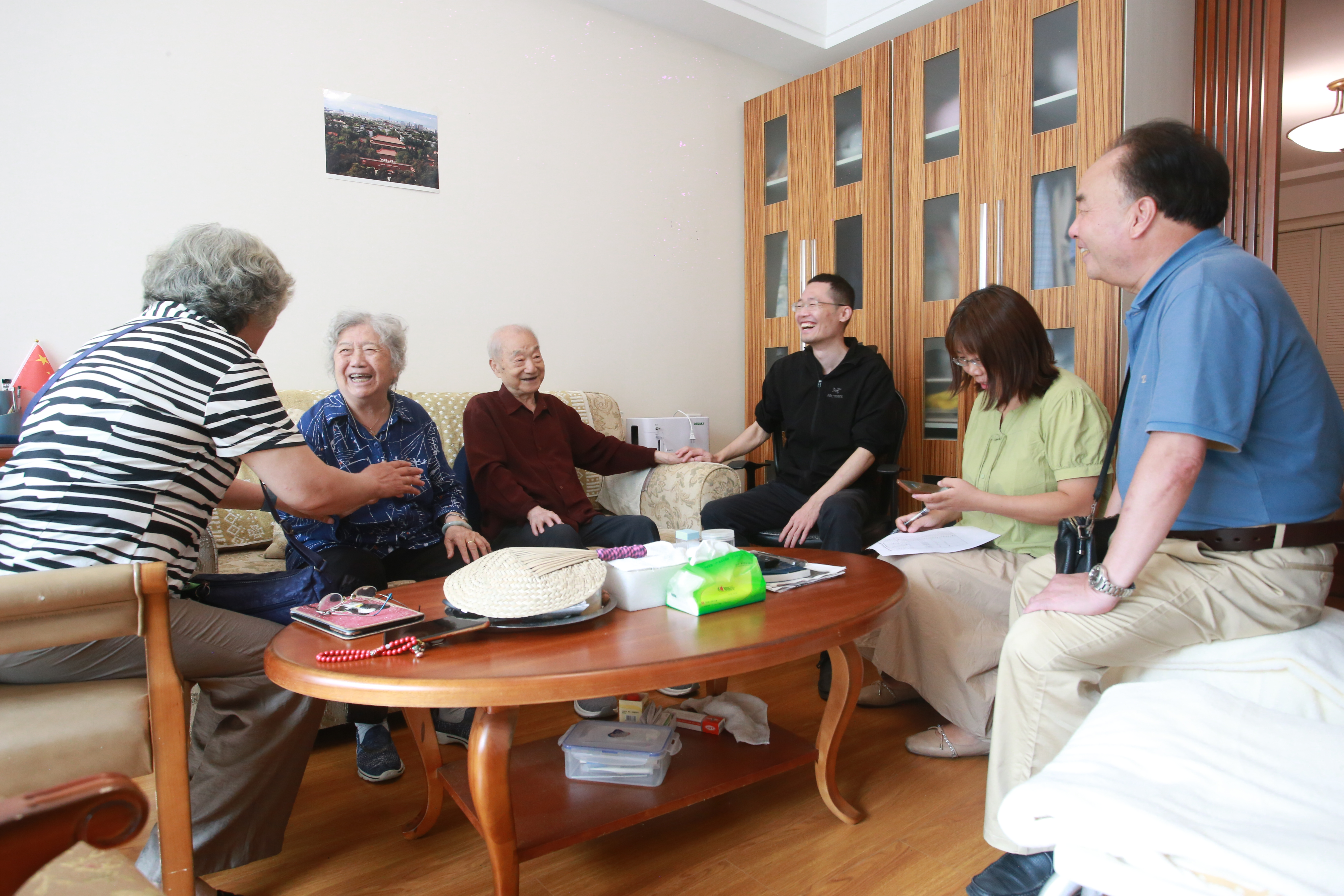 2024年7月23日公司唐源洁副经理、运输系原系主任刘作义老师、公司离退休党支部书记刘文英老师、院办王立娟主任看望访谈了公司89岁高龄的许春林老师和88岁高龄的戴菊娟老师,两位老师身体十分硬朗健康,和蔼可亲。许老师和戴老师依次回顾了在交大学习工作情况。