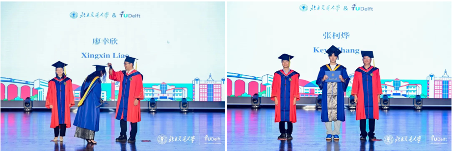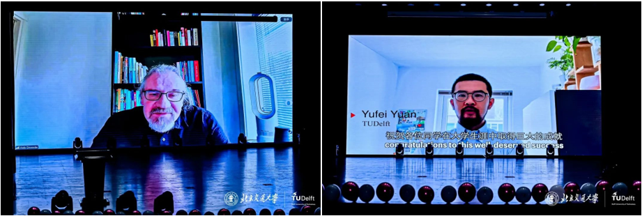 Rob Goverde教授通过网络视频连线的方式为毕业生们送上祝福。他回顾与交大学子携手同行的珍贵时光,热忱邀请更多优秀学子前往代尔夫特理工大学深造,共绘国际学术交流的美好画卷。代尔夫特理工大学的教师团队也为同学们精心录制了祝福视频,在展望全球交通运输业璀璨前景的同时,寄托了对学子们的殷切期望,这份跨越国界的关爱,令现场的同学们倍感温暖。