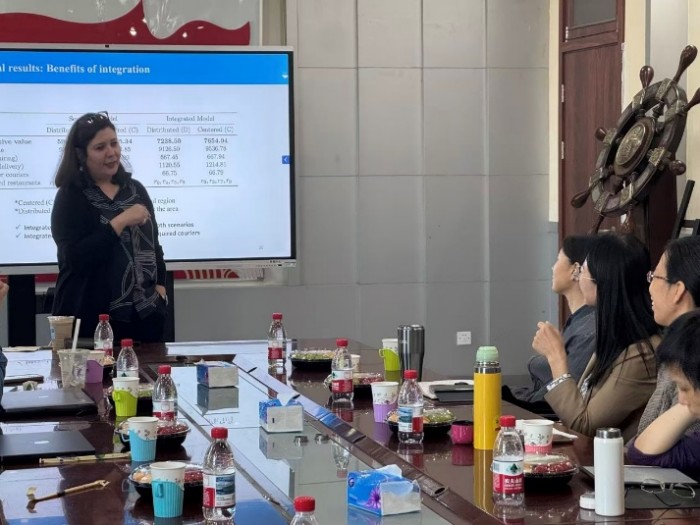 在学术交流环节, Shadi Sharif Azadeh教授就《为外卖平台设计与优化服务:关于产品组合、动态排序与骑手分配的一体化决策》进行学术报告。她提出了一个创新性的联合优化框架,能够在保证服务质量的前提下,同时确定餐厅产品组合与骑手调度,以实现平台整体利润最大化。她进一步分享了关于在拥堵与公平约束下的动态决策研究,展示了如何通过公平感知的骑手分配与排序机制,提升配送效率并兼顾骑手群体的公平性。这一研究不仅对平台运营模式具有重要借鉴意义,也为即时配送和多样化出行服务的实际应用提供了思路。