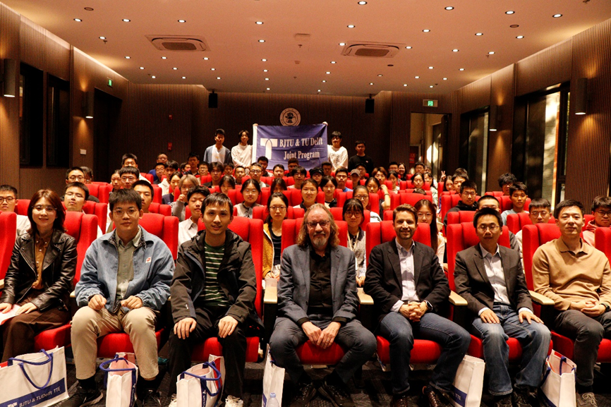 开幕环节后,全体与会师生合影留念,记录下这一具有纪念意义的时刻。随后,代尔夫特理工大学运输与规划系的Gonçalo Correia教授围绕该系在科学研究与公司产品方面的特色成果进行了介绍,为新生描绘出清晰的学习路径与发展前景。