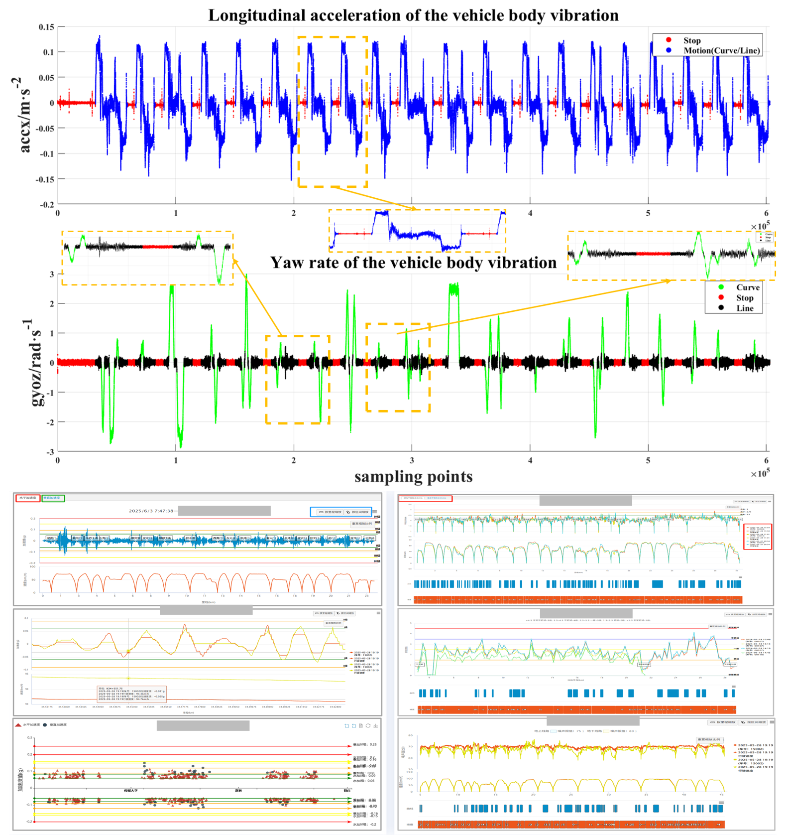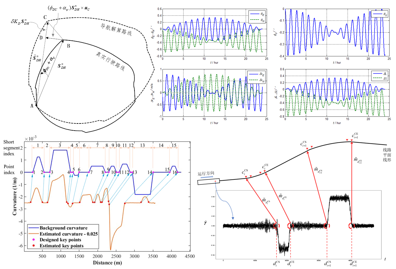 借助信号分析手段与惯性导航理论,结合机器学习技术,探索在强噪声与复杂动力学环境下为添乘晃车、轮轨噪声等多源数据进行精准里程定位与校准的理论方法与实现技术,同时为后续轨道病害诊断与劣化预测研究提供高质量数据基础。相关成果已在不介入列控系统、无GNSS支持的单传感器轻量化架构下将便携式轨道检查数据的定位误差控制在±5米内,相关系统已在北京、重庆等地十余家城市轨道交通运营单位实现工程应用。该研究方向近五年培养博士生(含在读)4名。