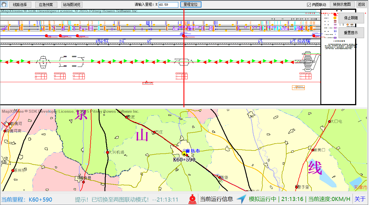 构建重点运输任务综合技术资料图数据标准,形成线路综合技术资料基础数据及全流程管理手段,开发基于Windows平台的单机版管理工具,解决综合技术资料图绘图、更新效率低等问题。基于专用设备实现线路综合技术资料图查询、管界图查询、列车模拟运行和数据维护等功能模块,以及列车模拟运行的可视化展示。