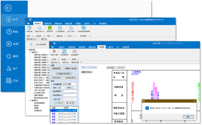 铁路工务管理信息系统(PWMIS)包括线路设备、桥隧设备、防洪水害、专题图、地理信息发布/查询、质量评价等十余个功能模块。团队成员在二十余年中接续参与了国铁集团该项目的研发、维护与更新工作,成为多个子系统的核心研发人员。2006年PWMIS实现全国18个铁路局推广应用,2020-2023年PWMIS2.0逐步完成更新换代。该系统目前已进入3.0版本的研发阶段,辅助实现铁路基础设施的全面监控、实时数据采集与分析、智能化管理和高效运维。