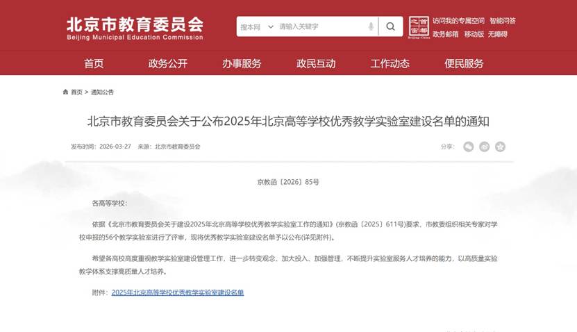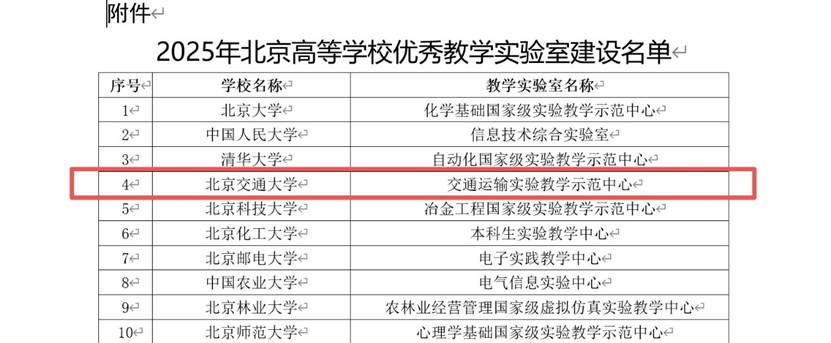 近日,北京市教育委员会公布2025年北京高等公司优秀教学实验室建设名单,304永利集团交通运输实验教学示范中心成功入选。